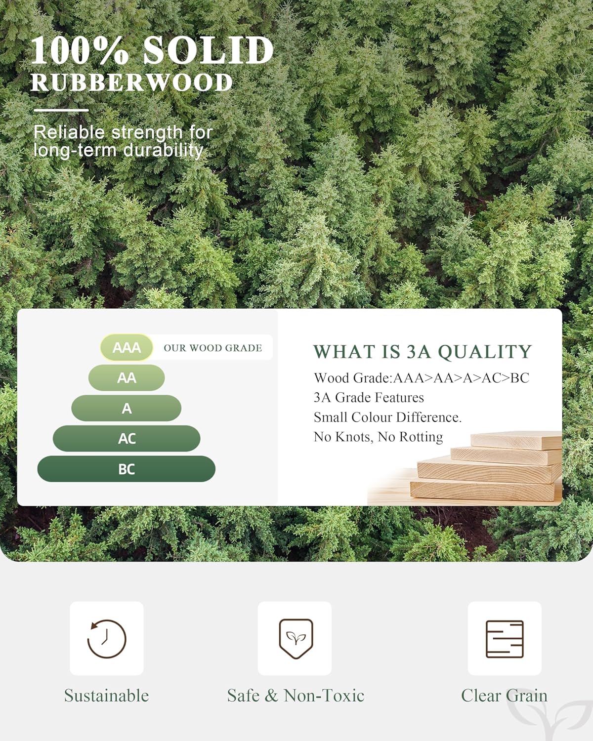🌲 100% Solid Rubberwood Construction