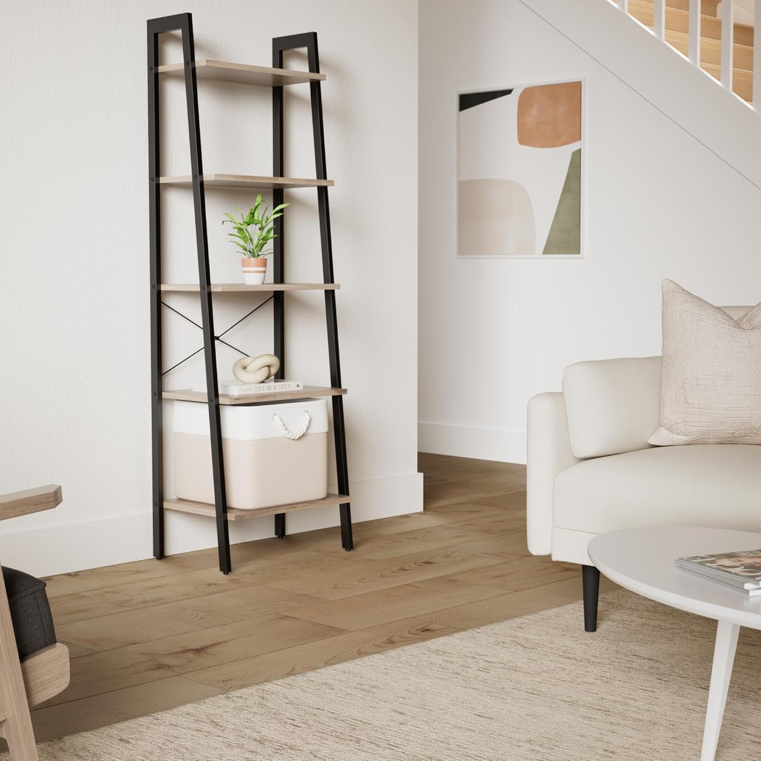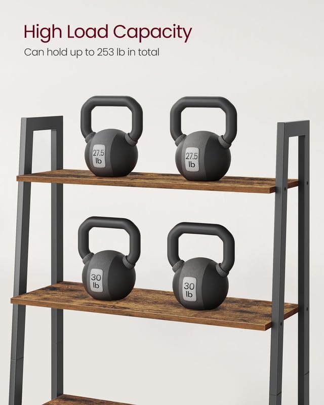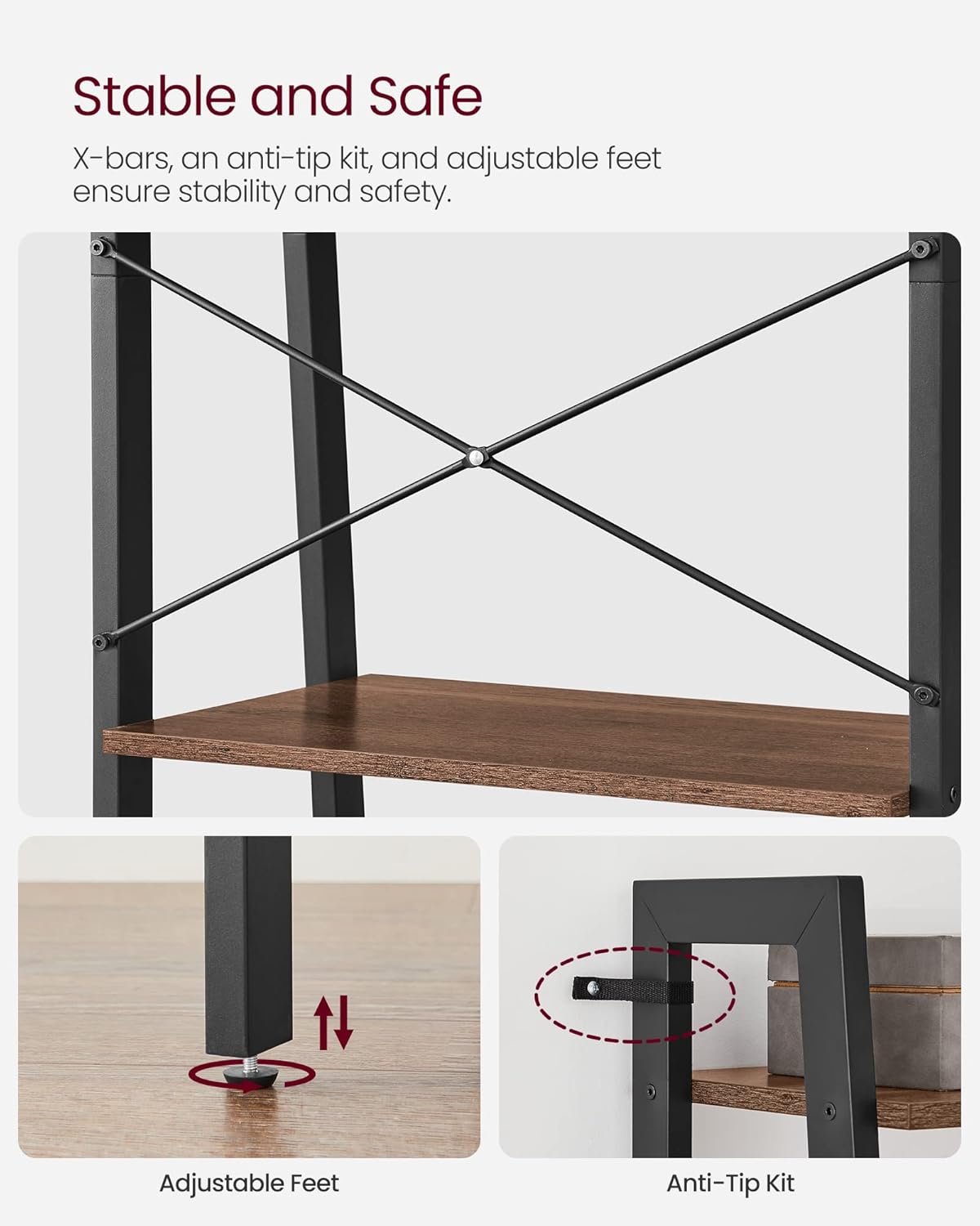 4-Tier Ladder Bookshelf – Industrial Storage Rack with Steel Frame for Living Room & Home Office