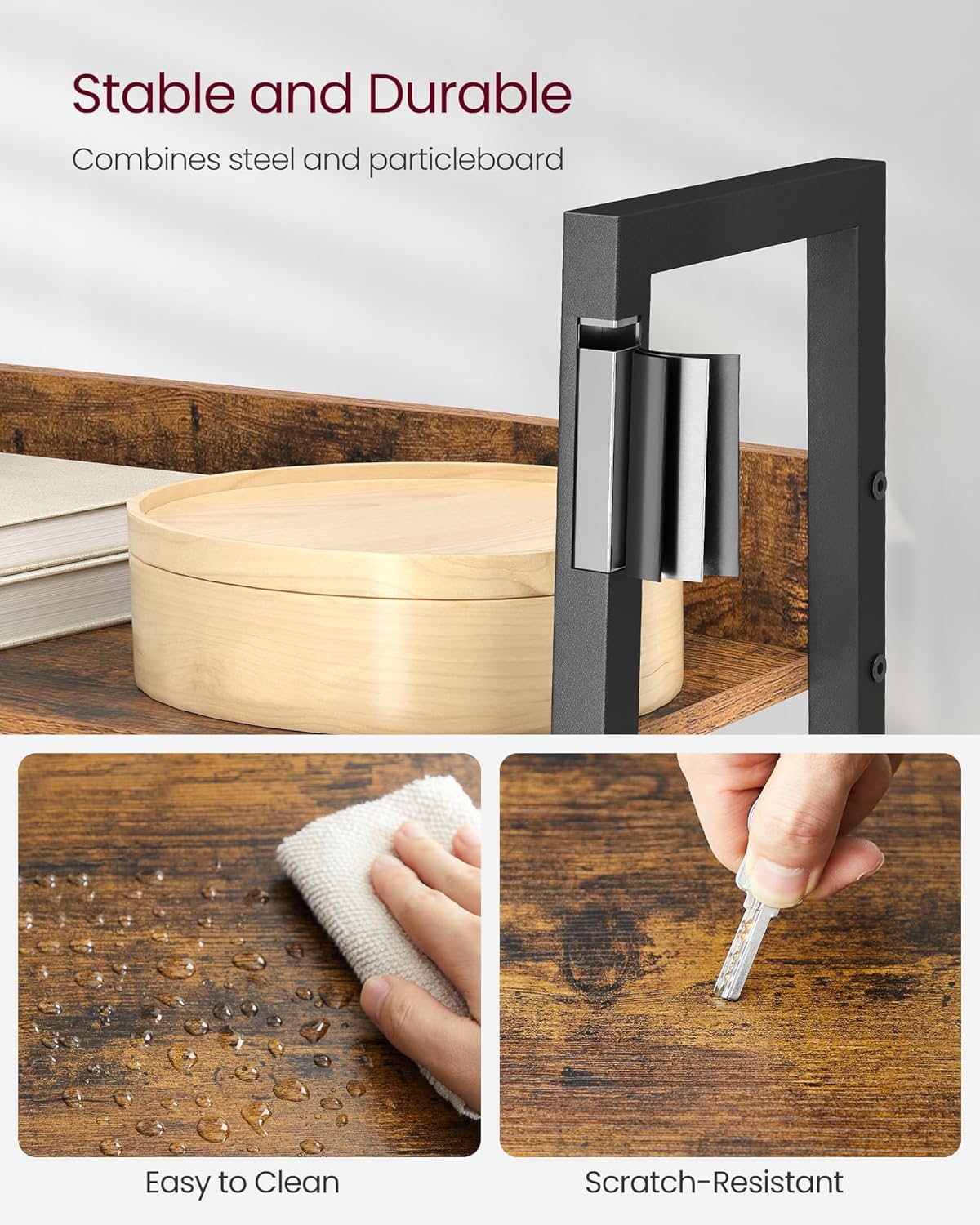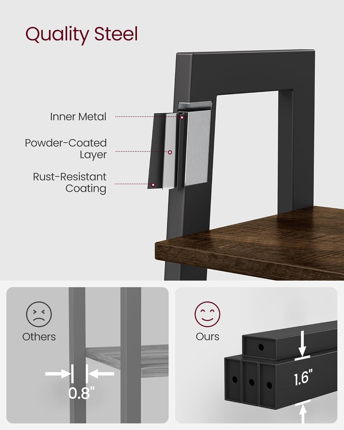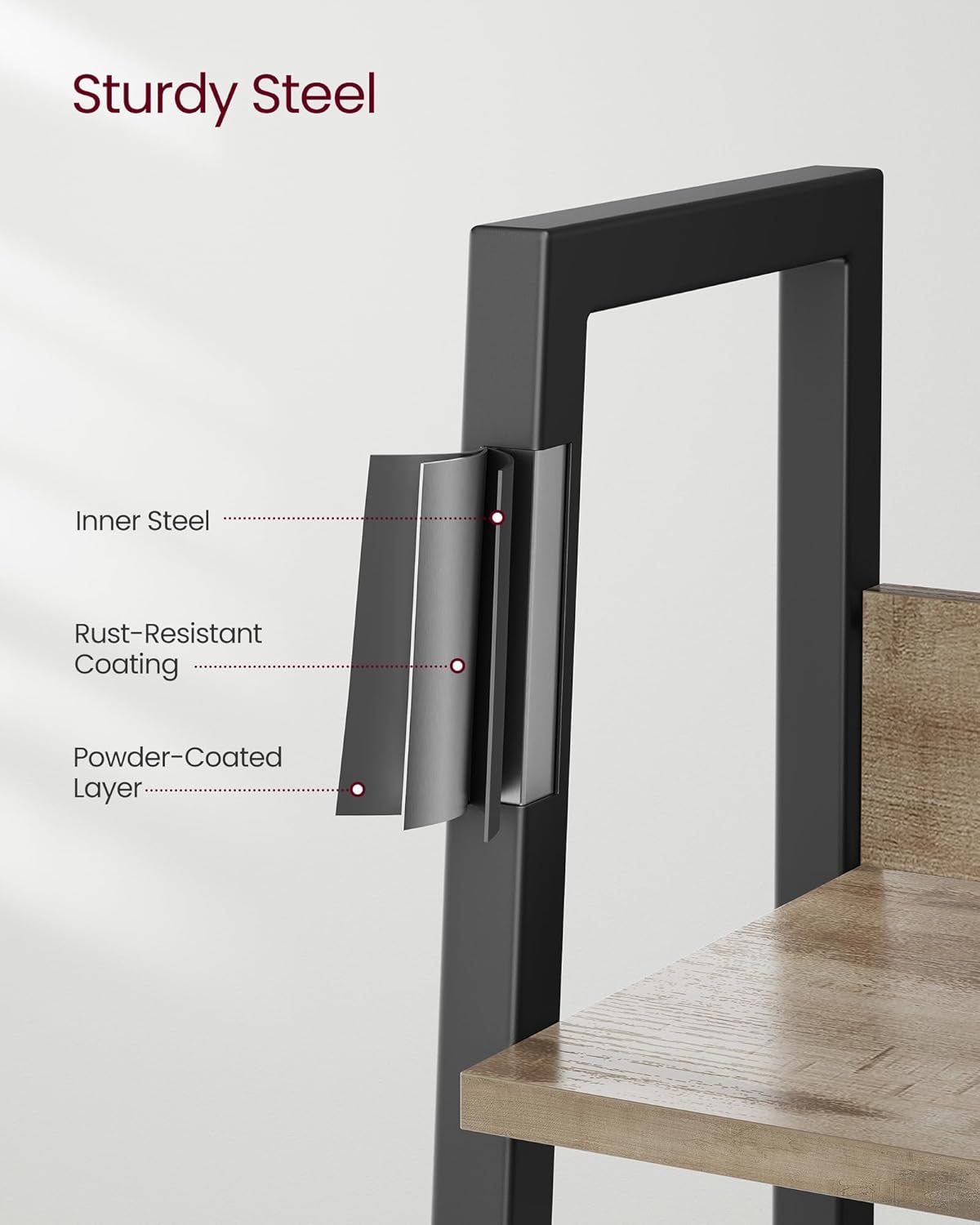 This 4-tier ladder bookshelf blends rustic wood tones with a sleek black steel frame, creating a warm yet modern aesthetic. It’s a perfect addition to industrial, farmhouse, or contemporary interiors, adding both charm and practicality.