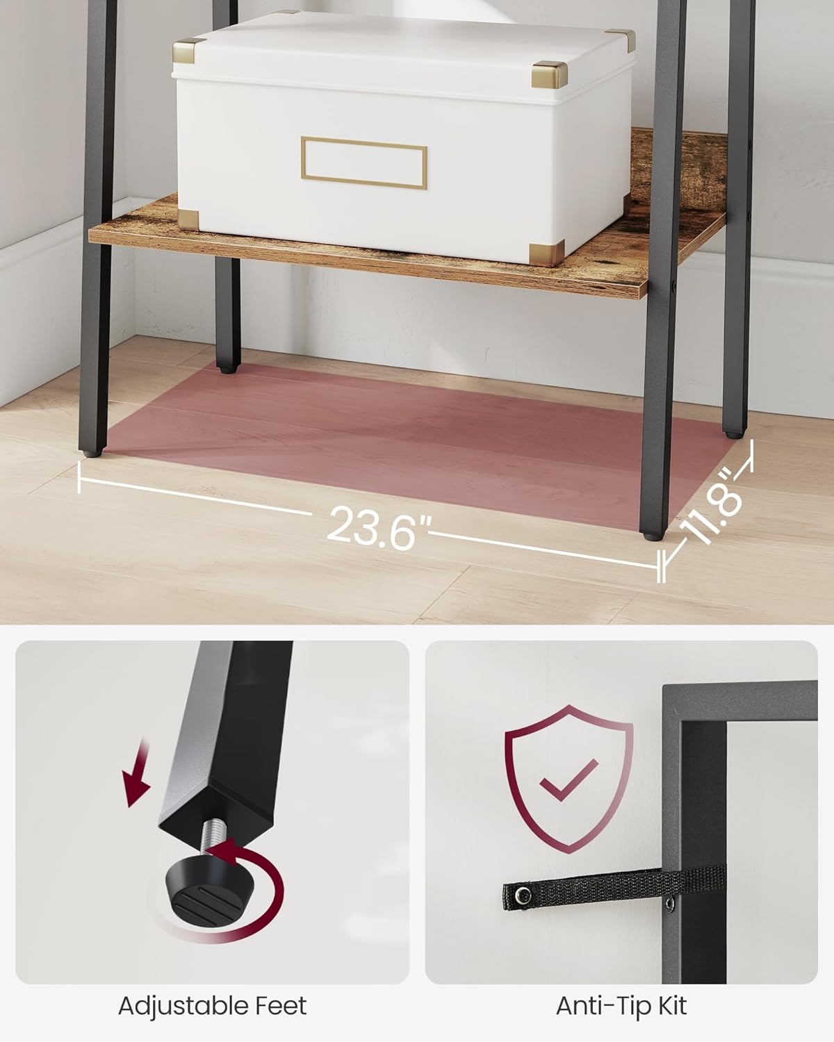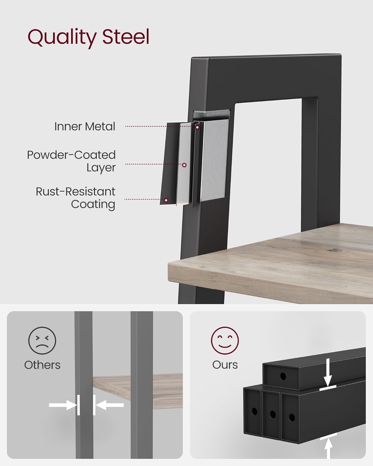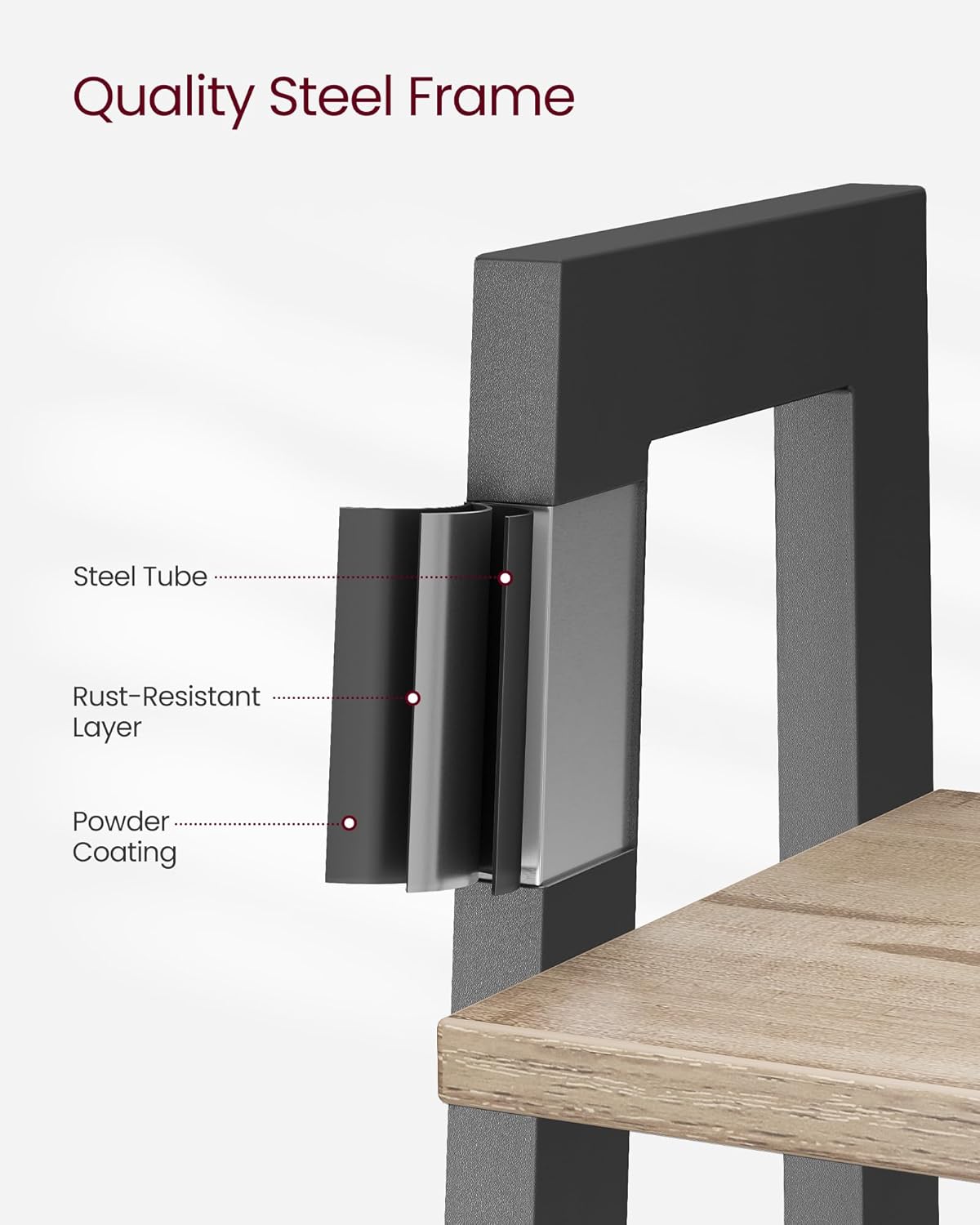 This 4-tier ladder bookshelf blends rustic wood tones with a sleek black steel frame, creating a warm yet modern aesthetic. It’s a perfect addition to industrial, farmhouse, or contemporary interiors, adding both charm and practicality.