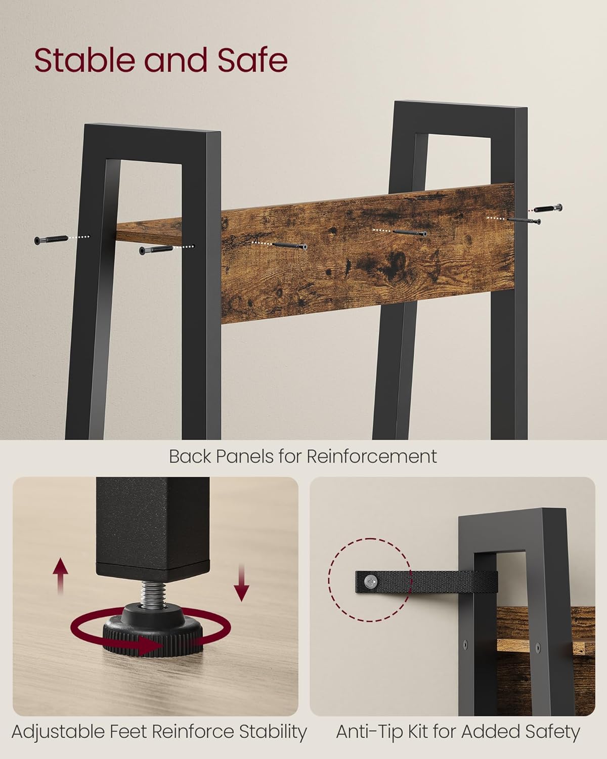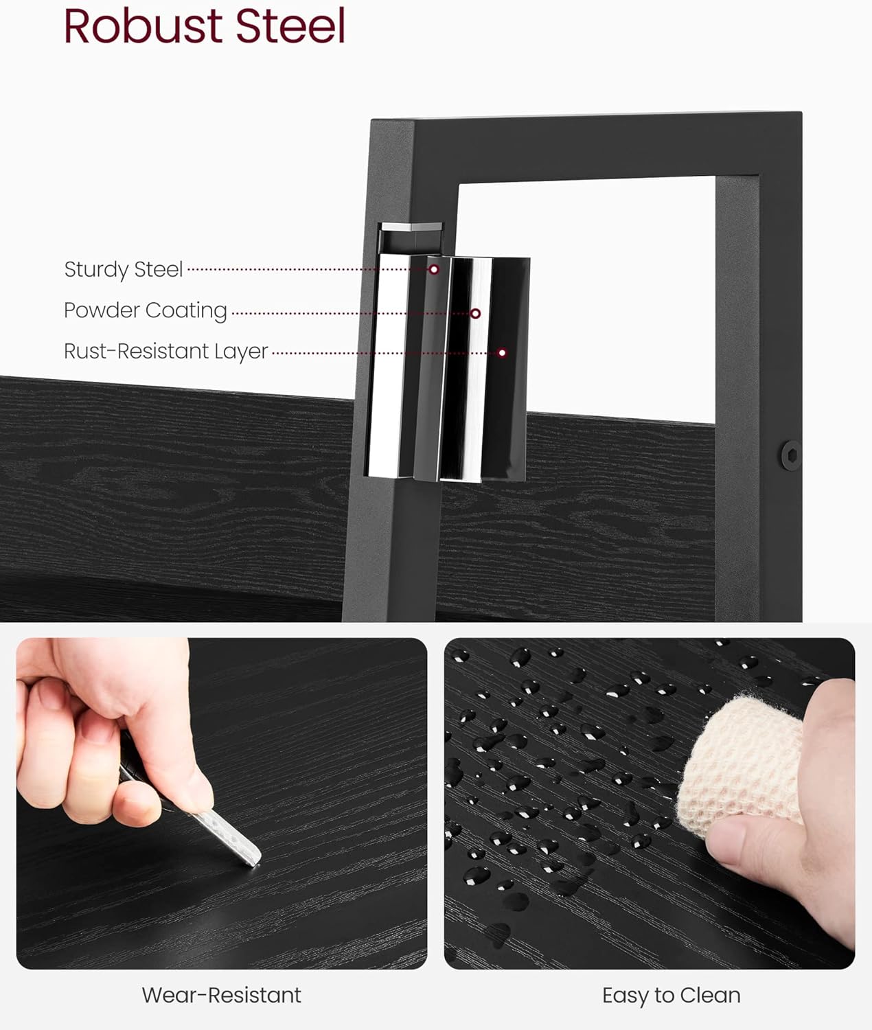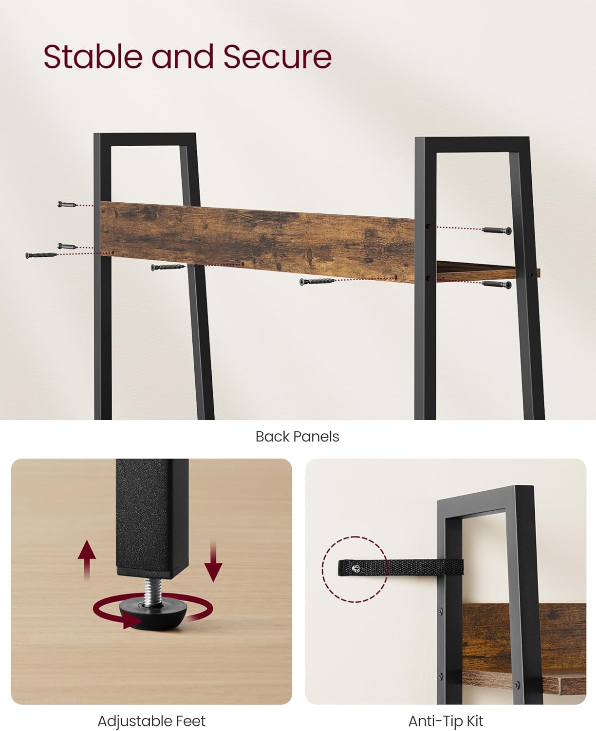 Crafted from premium particleboard and a solid steel frame, the structure ensures lasting durability. The X-shaped rear reinforcement and adjustable feet enhance stability, while the included anti-tip kit keeps the shelf safely secured to the wall—ideal for households with kids or pets.